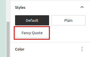The style when selected would just add a custom css class to the element is-style-fancy-quote -> now we can use this class to add custom style by adding the css code.
